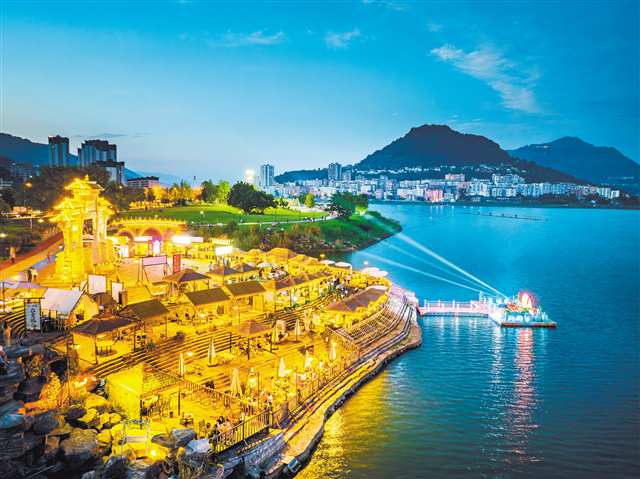 近年来,开州区结合本地特色旅游资源,围绕“食、购、游、娱”等主题,打造特色夜市、文艺演出等多元化消费新场景,不断提升城市“夜经济”消费活力,既满足了群众灵活就业需求,又丰富了市民和游客的夜间生活,助推经济社会繁荣发展。(王晓宇 摄/视觉重庆)