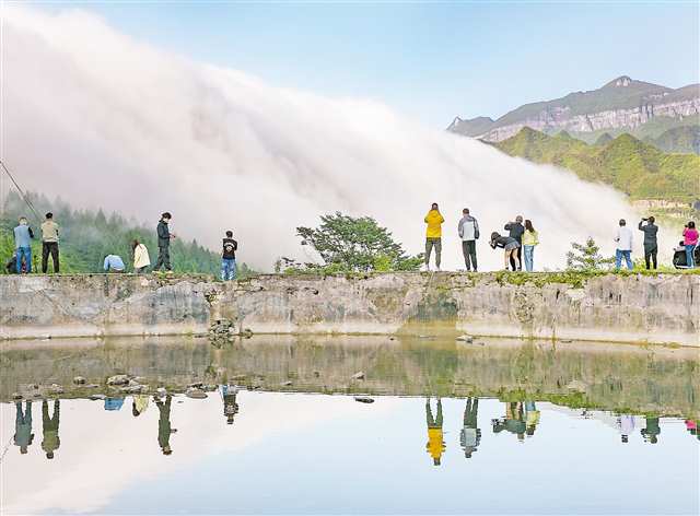 5月13日清晨,南川区三泉镇马嘴村出现了云瀑奇观,吸引众多游客和摄影爱好者前来打卡。