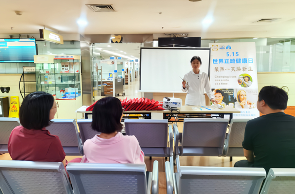 与此同时,正畸科第一、第二党支部也开展了形式多样的口腔健康宣教。副主任医师张林带来了一场口腔正畸科普讲座,从什么是正畸矫治、正畸矫治方法、错合畸形的危害以及形成的原因作详细阐述,并现场为患者答疑解惑。