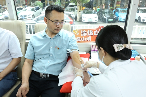 随着暗红色的血液缓缓进入采血袋,重庆市卫生健康委中医综合处三级主任科员史进也完成了献血。他表示,无偿献血是公民的健康素养。作为一名党员,同时也是卫生健康工作者,更应该支持献血工作,同时鼓励更多的人参与到无偿献血活动中来。