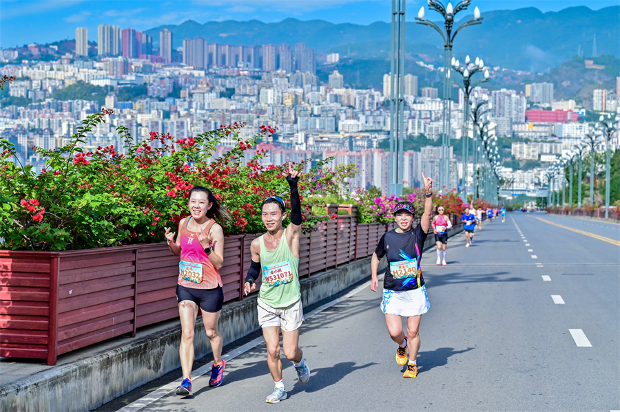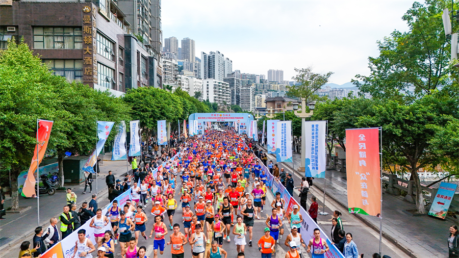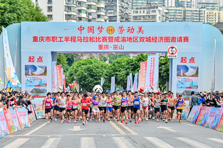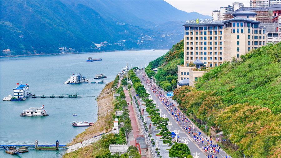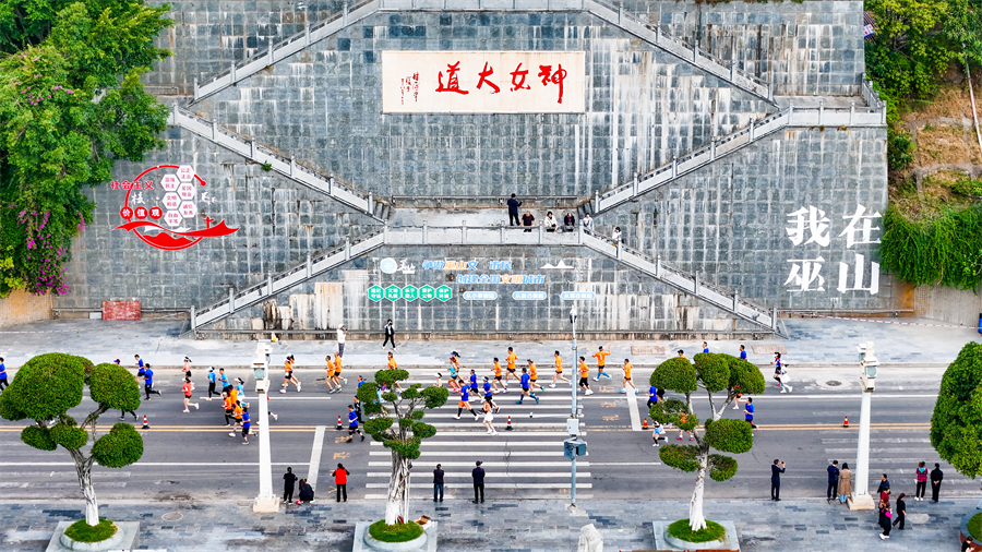 10月25日,“中国梦·劳动美”重庆市职工半程马拉松比赛暨成渝地区双城经济圈邀请赛在巫山激情开跑,来自四川和重庆两地的900余名职工运动员齐聚巫山,在凉爽的金秋时节沿着赛道纵情奔跑,在江山美景中尽享运动带来的无限乐趣。