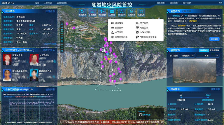 而对于三峡库区危岩,今年,重庆上线了“危岩地灾风险管控”应用,初步实现对三峡库区重庆段431处已查明危岩的全链条多跨协同风险管控。