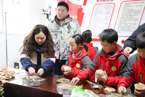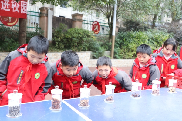 在中医药材展示区,同学们观察了解各种常见中药材,了解其特点、功效以及中医在防未病、治常见病、多发病、改善亚健康人群体质的独特优势。