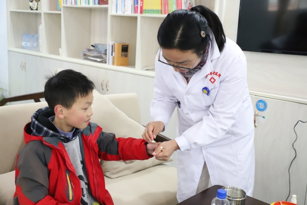“针灸是中医特有的治疗疾病的手段。是一种‘内病外治’的医术,通过经络、腧穴的传导作用,以及应用一定的操作手法,来治疗全身疾病。”在中医适宜技术体验区,医务人员一边讲解,一遍为同学们进行针灸、艾灸、拔罐等项目的体验,让同学们感受中医传统疗法的独特魅力和疗效,同时学习简单的保健技巧。