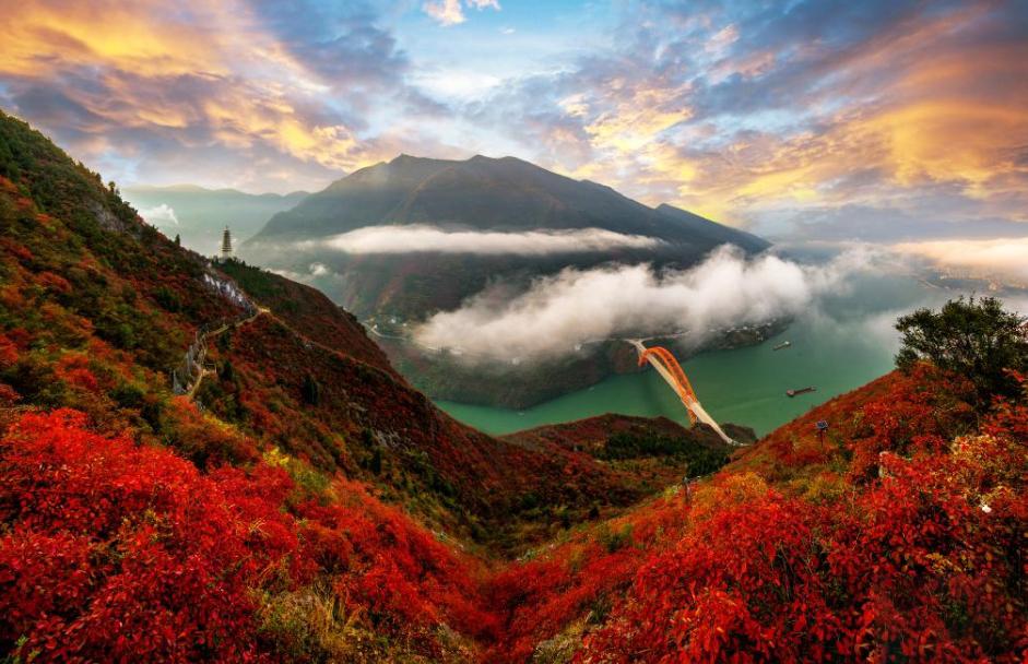 百万亩红叶,从江岸蔓延至山巅,仿佛大自然踢出了一记精彩的“世界波”,将三峡两岸染成一片炽烈而动人的中国红。11月14日,第十九届重庆长江三峡(巫山)国际红叶节北京推介会举行,现场将推介巫山文旅资源、红叶文化,这个秋冬,行到巫山,亲眼见证这幅千年红叶画卷。