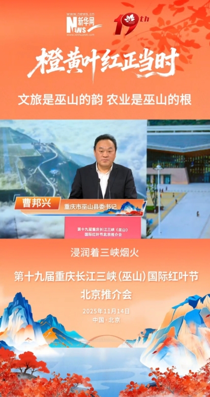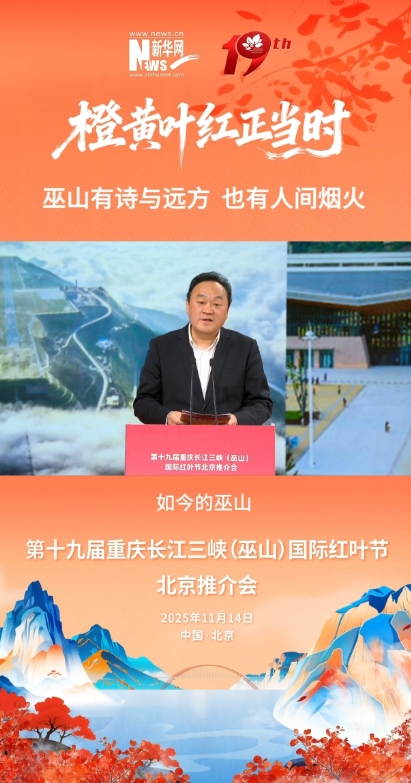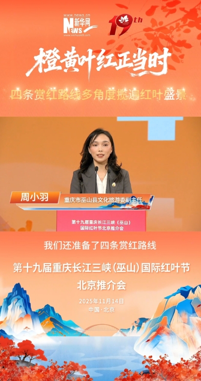11月22日,第十九届重庆长江三峡(巫山)国际红叶节将开幕。本届红叶节以“雄奇山水间・新韵红叶情”为主题,借红叶串联起文化与发展脉络,以红叶为纽带,展现巫山自然之美与发展成果,以艺术之力传承“天路精神”,通过话剧、歌舞等多元活动构建文旅盛宴,让游客在沉浸式体验中感受巫山的坚韧与活力。