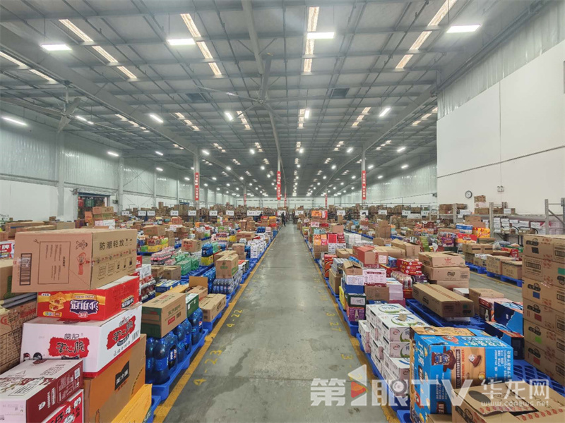 各类商品整齐有序地堆放在仓库中。(董悠 摄)