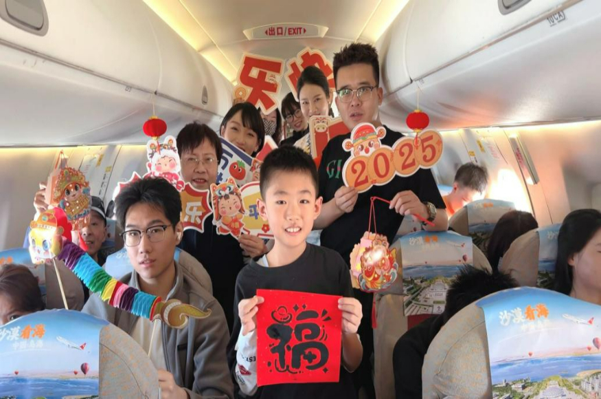 为提升旅客的乘机体验,感受热闹祥和的节日气氛,2025年元旦节天津航空在GS7855天津至昆明及GS6635呼和浩特至珠海的航班上开展“天航邀您庆新年 欢度元旦佳节”主题客舱活动,与旅客一起在万米高空喜迎2025年。