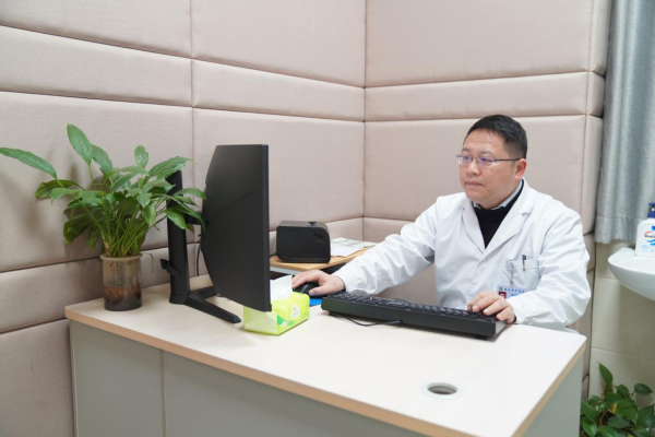 郭俊伟在给患者看诊。