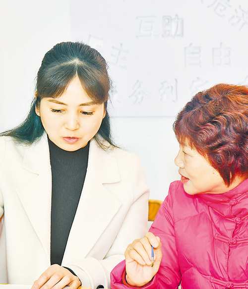 黄娜(左)与老人们交流。(受访者供图)