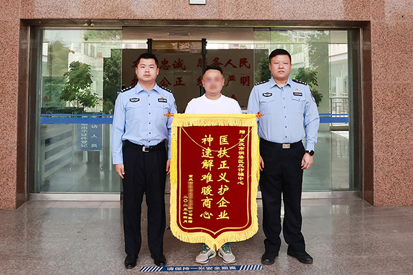 日前,重庆市铜梁区公安局连续奋战、多方协调,成功为辖区一企业解决资金账户因涉诈嫌疑被冻结的难题,护航企业健康发展。近日,该企业负责人将一面写有“匡扶正义护企业 神速解难暖商心”的锦旗送到铜梁区反诈骗中心,向民警表达感谢。