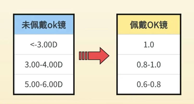 预期视力仅供参考,佩戴OK镜后白天裸眼视力与近视度数、散光度数、角膜厚度、佩戴时长等各种因素相关。