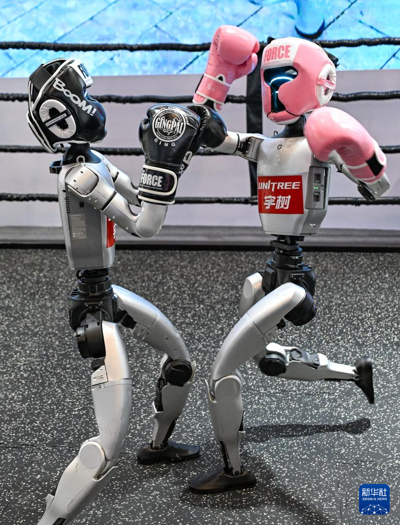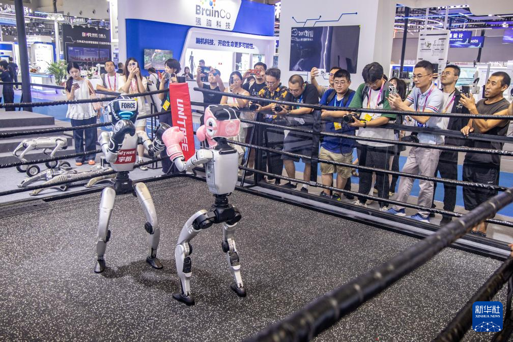这是9月4日在2025世界智能产业博览会宇树科技展厅拍摄的机器人拳击赛现场。新华社记者 王全超 摄