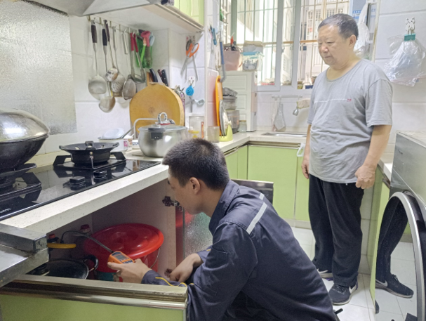 “红岩燃小兵”在退休教师家中检查用气安全。