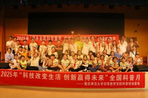 2025年全国科普月期间,重庆师范大学初等教育学院科普培训基地、重庆师范大学科技教育与传播研究中心联合走进重庆师范大学初等教育学院附属小学,为300余名小学生带来一场“沉浸式”科学课堂。