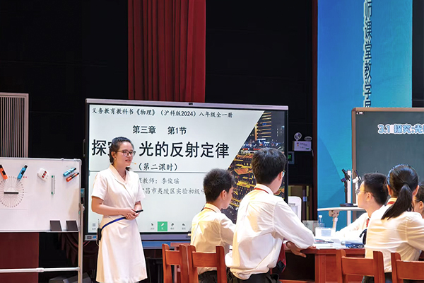 在教学展示中,老师们运用现代教学手段,通过情景导入,活跃课堂氛围;发布任务清单,将知识点由浅入深逐步渗透;布置分组实验,让学生在观察、记录、思考中探究物理规律。不少教师还将科学探究融入真实场景,引导学生解决实际问题,在达成课堂教学目标的同时深化同学们的家国情怀。