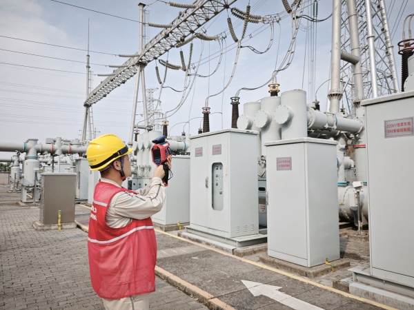 国网重庆市北供电公司员工在220千伏悦来变电站开展大国工匠论坛保电特巡工作。(钟雪 摄)