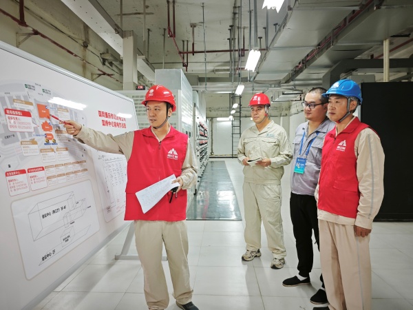 国网重庆市北供电公司员工在国博中心配电房部署大国工匠论坛保电工作安排。(钟雪 摄)