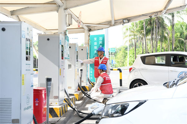 9月24日,国网重庆市北供电公司两江运维班在复盛高速公路充电站开展检查。(冯胜岚 摄)