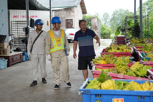 9月24日,国网綦江供电公司员工在綦江区三角镇佛手柑基地了解用电情况。(袁巧 摄)