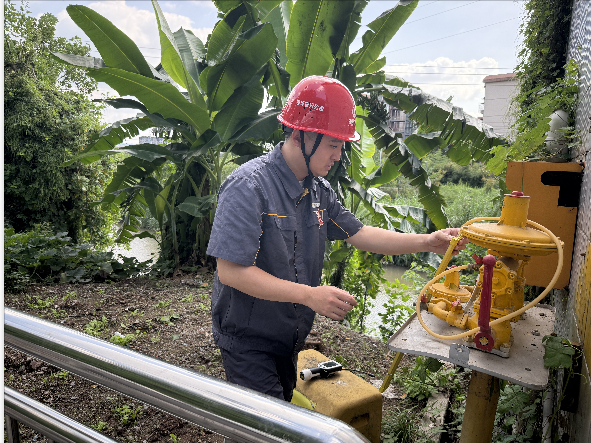 “调压箱附近水位正常,周边无滑坡迹象!”清晨,陈家桥客户服务中心维修员王志鹏踩着泥泞,对河流旁的调压设备进行第二轮巡检。他手持检漏仪,仔细核对压力数据,并在EIS巡检系统中实时上传现场照片,裤腿早已被浸湿。