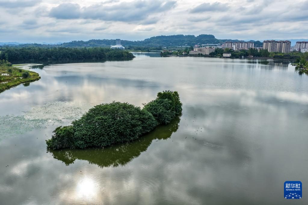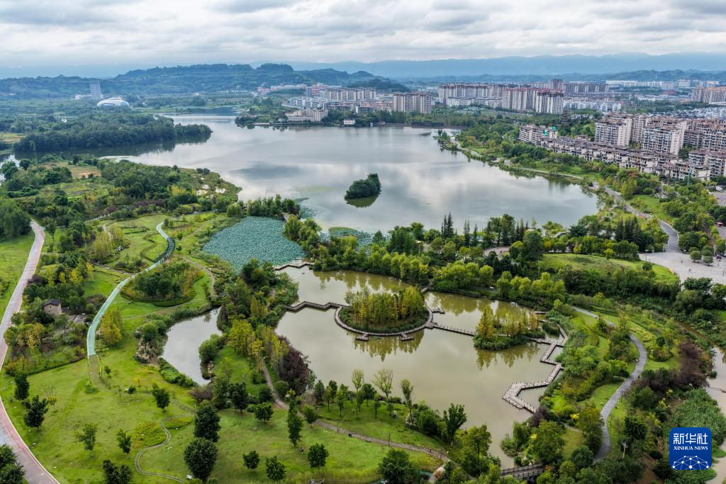 重庆双桂湖国家湿地公园景色(9月26日摄,无人机照片)。新华社记者 唐奕 摄