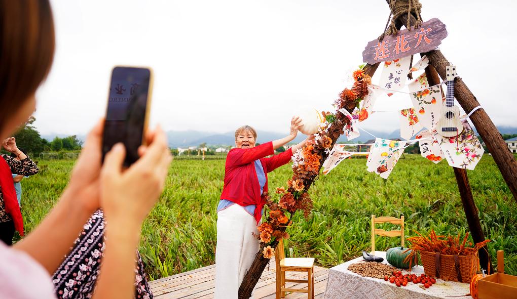 一旁的农田里,加油声、欢笑声此起彼伏。全民健身农民趣味运动会正在火热进行,村民和游客组队参与“粮食抢收”、“水果搬运”等充满农趣的比赛,大家卷起裤腿,在泥土的芬芳中体验着农耕的辛劳与快乐。亲子家庭则热衷于“蔬菜接力”、“滚铁环”等游戏,浓浓的亲情和童趣弥漫在田间地头。正如一位村民感慨:“以前没农活儿时大伙儿就在家歇着,现在村里活动这么丰富,城里人也爱来玩,越来越热闹了。”