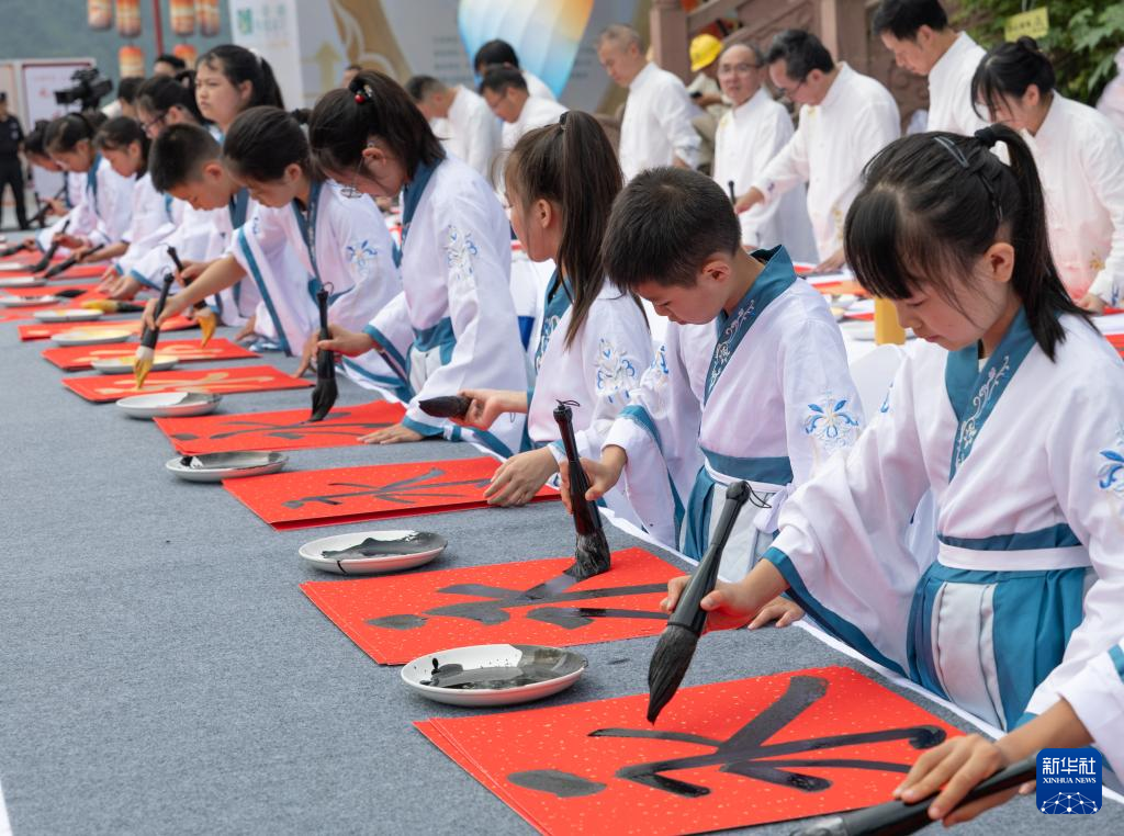 9月28日,重庆永川松溉古镇活动现场,书法爱好者现场书写2025“一带一路”年度汉字“永”。新华社记者陈诚 摄