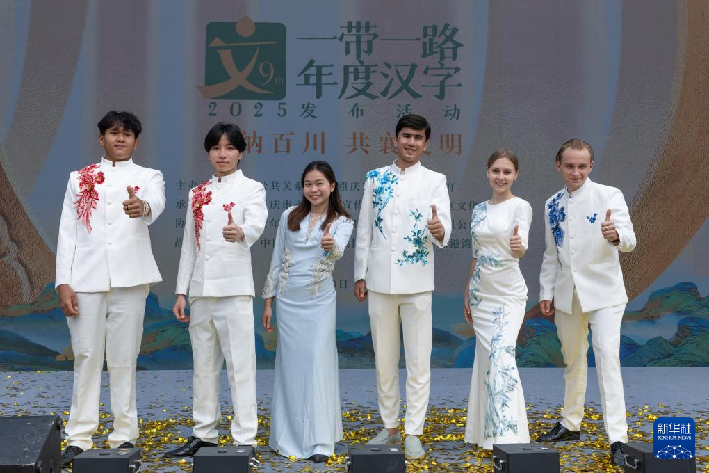 9月28日,重庆永川松溉古镇活动现场,外国留学生们现场见证2025“一带一路”年度汉字发布。新华社记者陈诚 摄