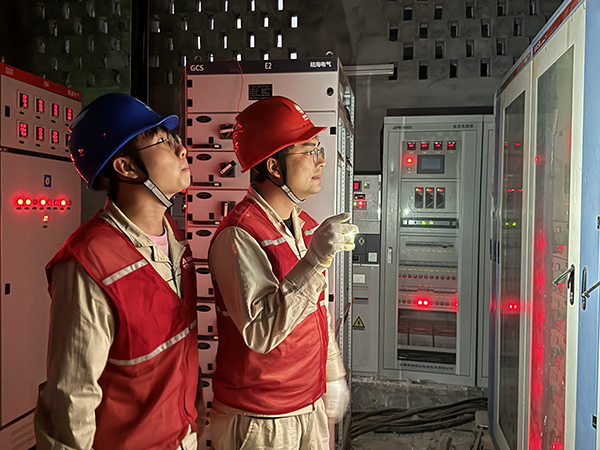 国家电网重庆电力(巫山)红岩共产党员服务队检查巫山小三峡游客中心配电房运行情况。(肖玉建 摄)