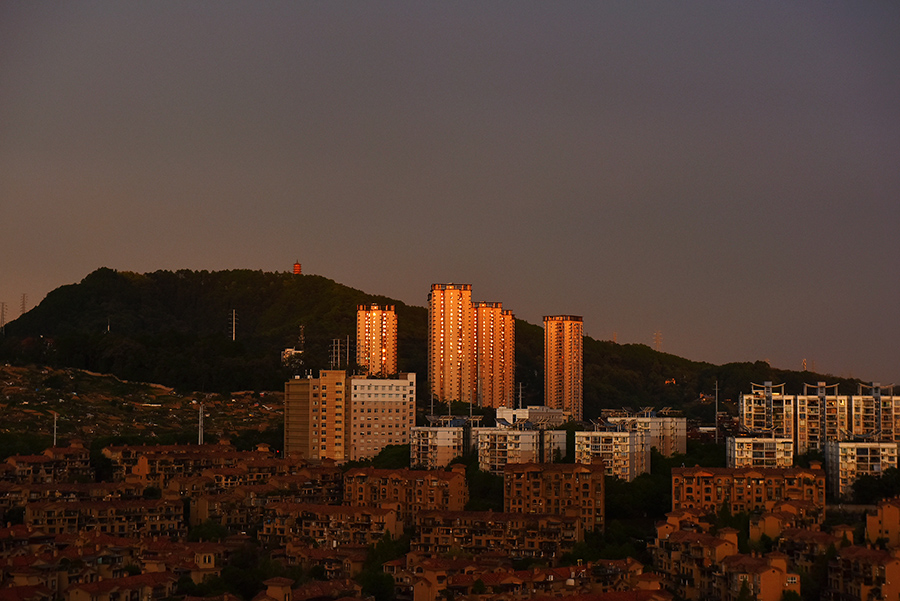 金光穿透云层,为这座城市披上童话般的绚丽色彩。新华网发(黄河 摄)