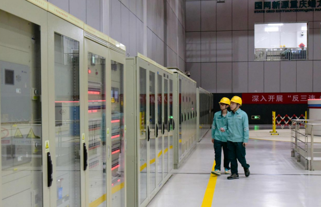 国网新源重庆蟠龙抽水蓄能电站内,工作人员在巡查设备。(杨晨 摄)