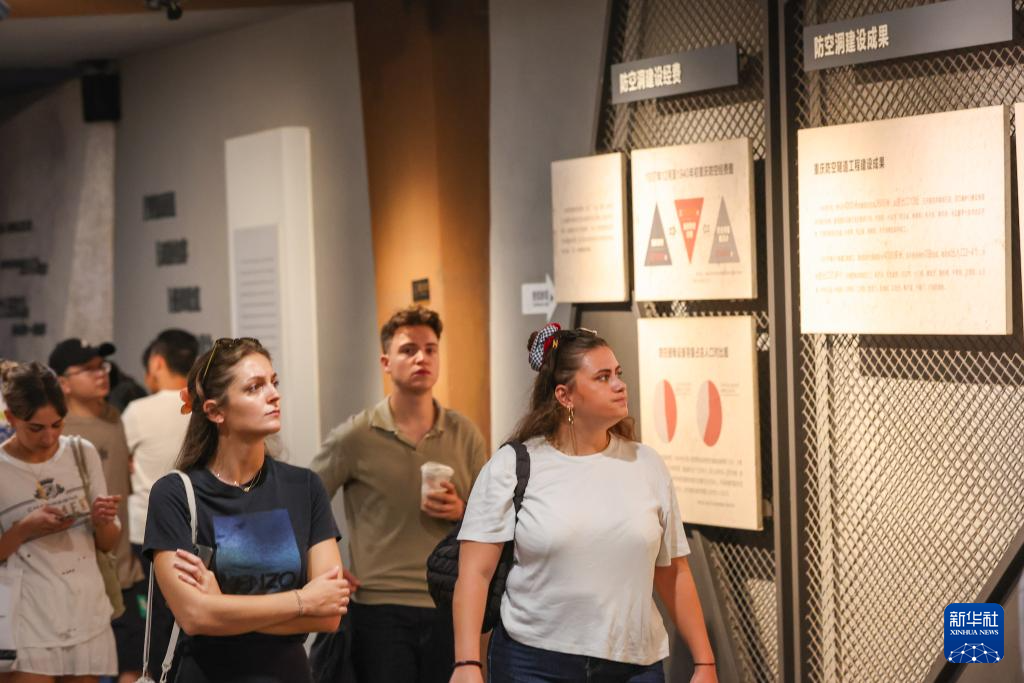 10月1日,俄罗斯游客在重庆市渝中区参观十八梯大隧道遗址。新华社记者 黄伟 摄