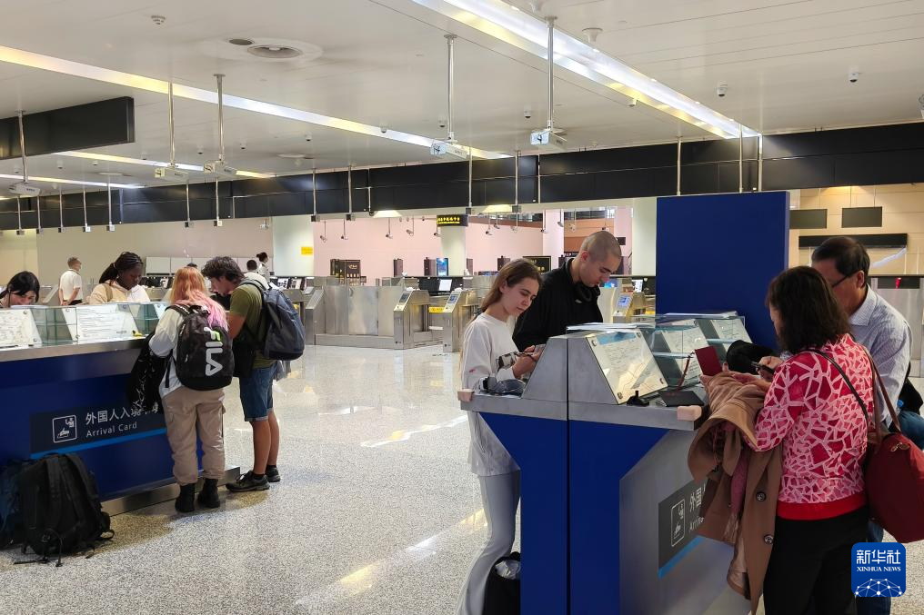 10月1日,在重庆江北国际机场,入境旅客填写入境卡。新华社发(曾言延 摄)