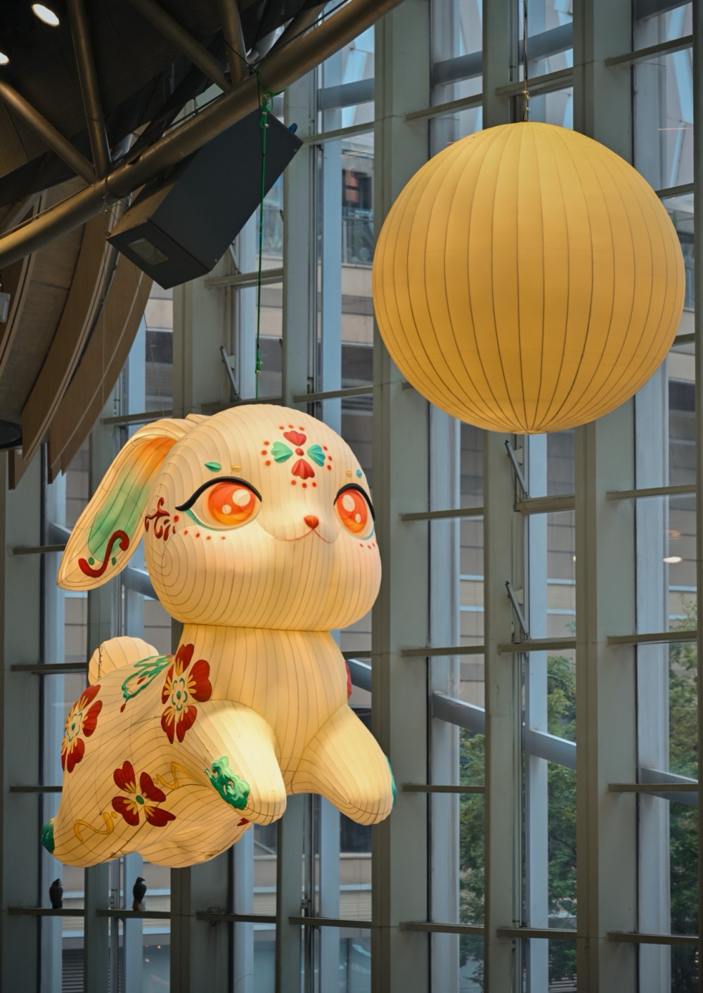 两江新区光环购物公园,大师运用非遗手工裱糊、浮雕工艺手作玉兔等,结合自然植物园打造“玉兔追月”场景,还在光里街区设置四大秋日场景,氛围感拉满,拍照效果绝佳。