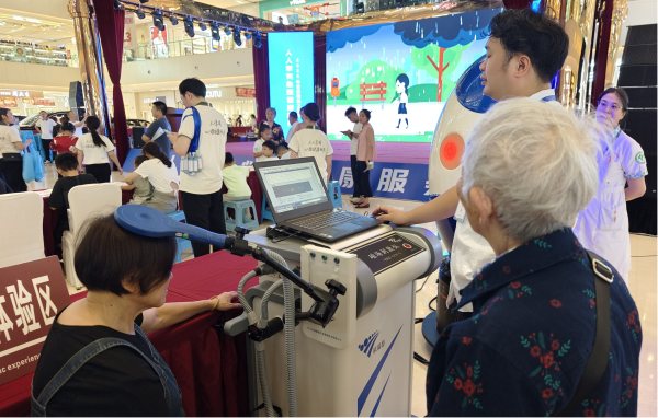 互动治疗体验区则充满了科技感与趣味性。重复经颅磁刺激治疗、击打宣泄、VR治疗、绘画治疗等现代化心理治疗设备前排起了队伍。市民在专业人员引导下,亲身体验如何通过先进技术或艺术表达来疏导情绪、缓解压力。“VR体验让我感觉很新颖,很解压!”一位刚体验完的小朋友分享道。