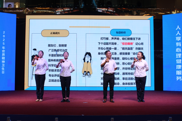 在舞台展演环节中,演出的节目包括舞蹈《和你一样》、心理舞台剧《愤怒观测镜》和《时空信箱》、快板《科学识焦虑,理性破迷障》以及歌曲《做自己的光,不需要太亮》。这些节目不仅展现了战胜心灵困境的积极风貌,更在艺术共鸣中悄然拆除了横亘在公众与精神卫生知识之间的“心墙”。