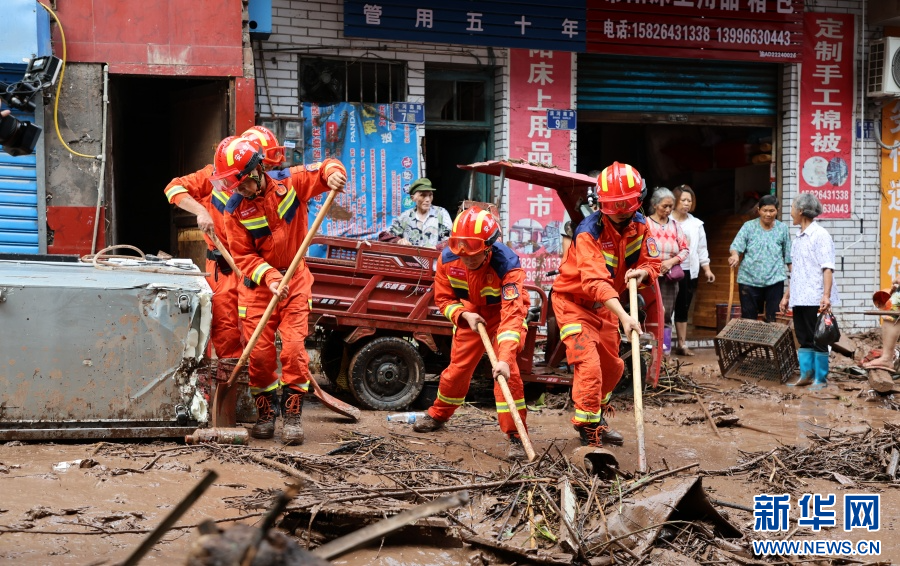 重庆市专业应急救援总队在忠县开展清淤作业。新华网发(资料图)