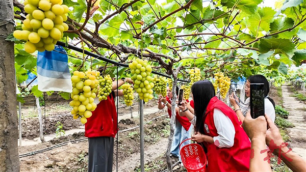 近日,由南川区农业农村委主办的2025年乡村网红(农产品电商)高素质农民培训班在南平镇永安村葡萄种植基地开展实地实操教学。