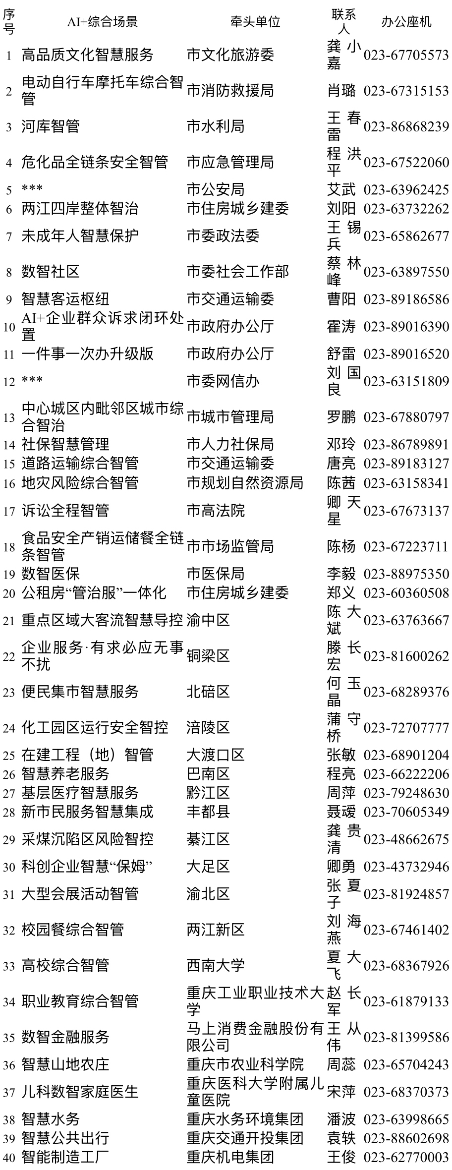 市数建办相关负责人表示,第二批清单发布的40个AI+综合场景,是深入贯彻落实中央“人工智能+”行动部署和城市工作会议精神,落实数字重庆建设推进会部署,不断丰富助企兴企高质量发展、高效能社会治理、便捷生产生活服务应用场景。