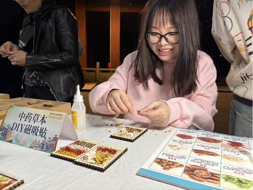 中药草本磁吸贴展位前,不少年轻人正在排队参与制作。“这个设计太贴心了!”张女士指着手中的磁吸贴说,“可以贴在办公室或车里,既能散发淡淡的药香,又有安神醒脑的功效,把养生自然地融入日常生活。”