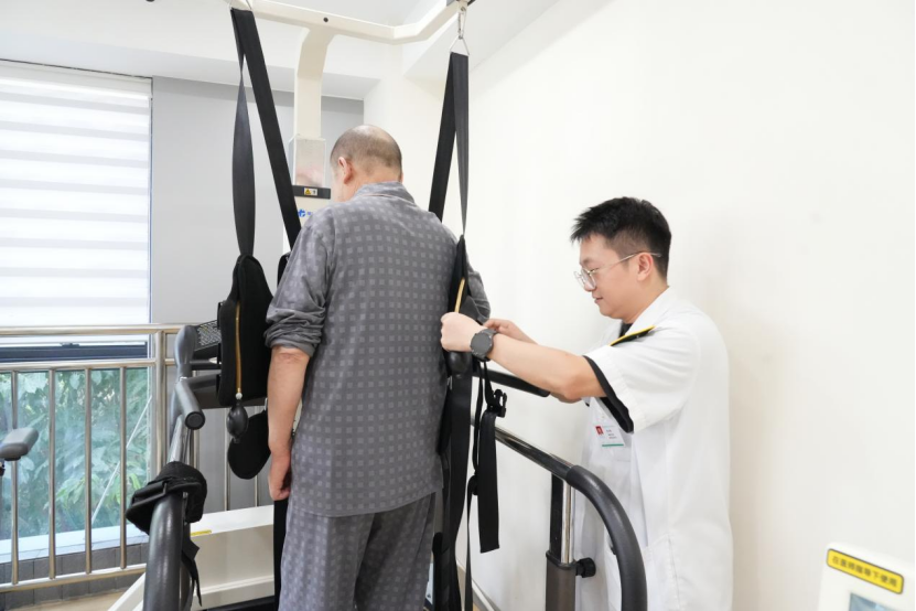 因脑出血遗留偏瘫的吴先生,正是这一康复体系的受益者。入院时,他左侧肢体明显乏力,伴随活动障碍与肌肉萎缩。在接受全面评估后,康复团队为他量身定制了一套综合方案,将四肢联动训练、电动站立床训练与被动肌力练习有机结合,并辅以电针、中频治疗、穴位按摩等中西医协同干预。经过系统治疗,吴先生左侧肢体功能逐步改善,展现出良好的康复效果。