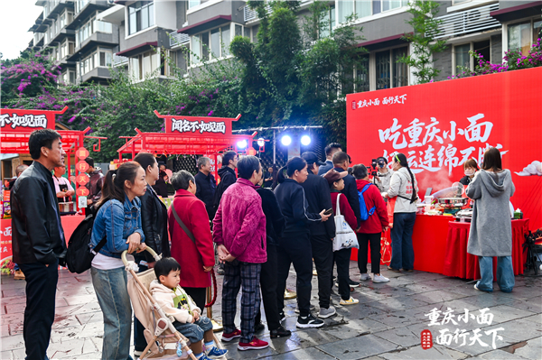为撬动城市年轻消费市场,在四川大学锦城学院,重庆小面互动快闪站吸引大量师生驻足。师生们通过参与游戏互动、试吃体验,深入了解重庆小面文化。“辣而不燥、回味悠长,我要推荐给室友!”一名学生试吃后被重庆小面“圈粉”。
