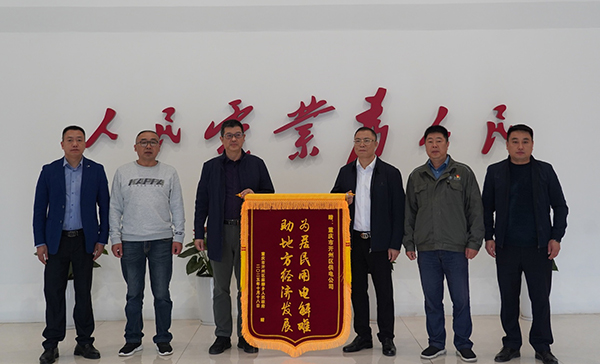 开州区麻柳乡党委书记李成明带领村民向国网重庆开州供电公司负责人送上锦旗。(安姚鑫 摄)