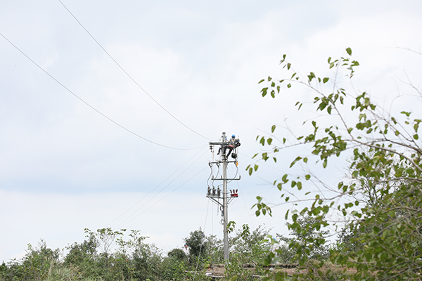 当日,工作人员采用人工牵引作业法,放线、紧线、固定……作业井然有序进行,人员配合紧密,确保金具、导线紧固,弧垂符合标准。经过近8小时作业,工作人员圆满完成绝缘导线更换工作。
