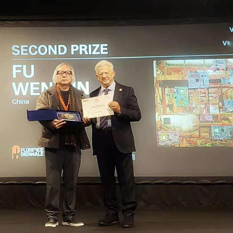 佛罗伦萨国际当代艺术双年展主席切洛纳先生亲自为傅文俊颁发奖牌与证书。