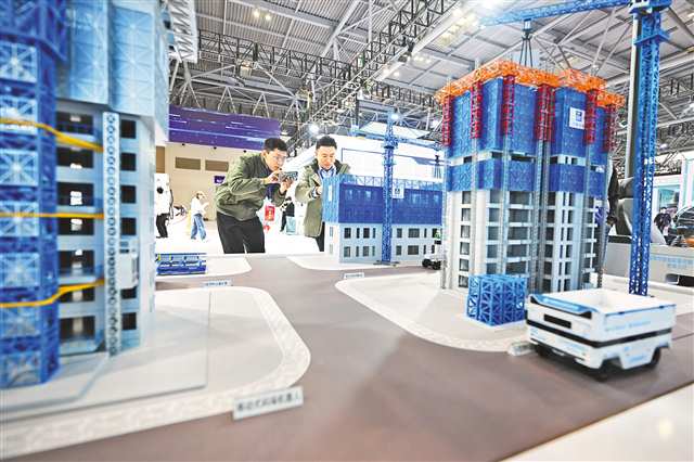 在中建三局展位,工作人员通过操作智能塔机系统,展示如何远程控制塔吊。一旁的模型区,物料机器人正有条不紊地运输。“我们已经有项目启动了上述智能设施设备,进一步提升了安全水平。”工作人员介绍。