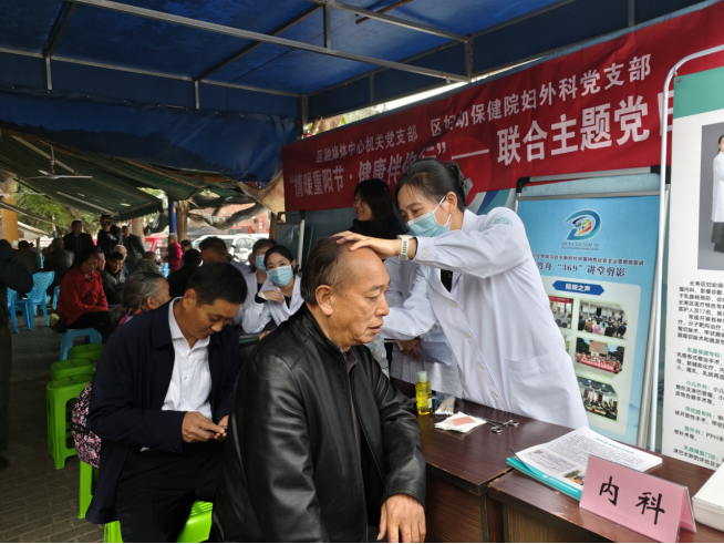 量血压、问诊咨询、体验刮痧、观看文艺表演……10月29日,重庆市长寿区妇幼保健院与区融媒体中心在渡舟街道联合开展“情暖重阳节,健康伴你行”主题党日暨义诊活动,将健康服务与文化展演相结合,为社区居民送去节日关怀。