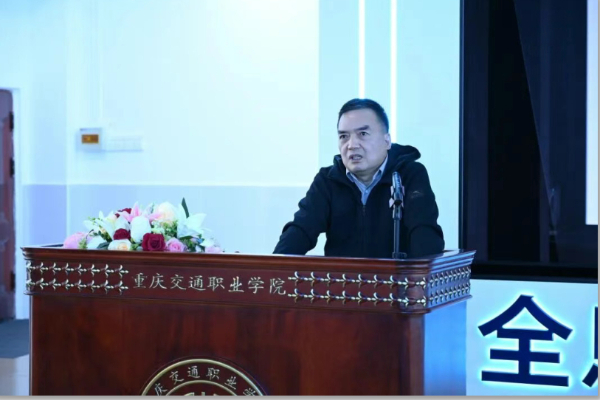 重庆交通职业学院校长梁乃兴在致辞中表示,学校始终坚持“立足交通、面向市场、服务社会”办学定位,推动学校内涵式发展,不断提升育人质量,为社会培养输送了一批又一批高素质技术技能人才。大会围绕“深化产教融合,服务区域发展”主题,旨在凝聚共识、汇聚合力,助力职业教育服务区域经济社会发展、赋能产业升级。学校将精心组织安排,全力做好服务保障,确保大会成功,并愿以此次大会为新起点,与各方携手,共同推动职业教育发展。