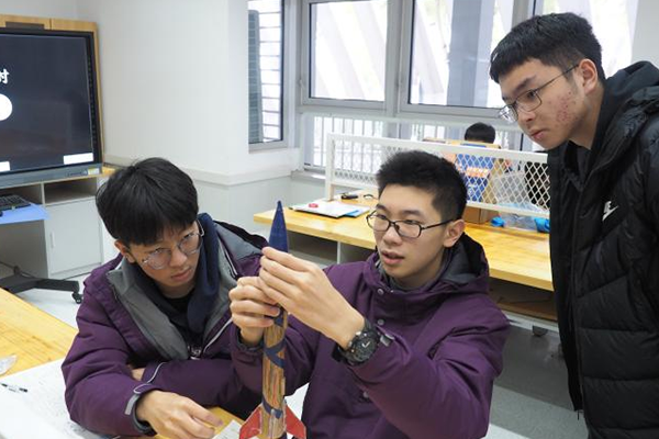 重庆市南开两江中学校教师指导学生进行运载火箭的结构设计与制作。
